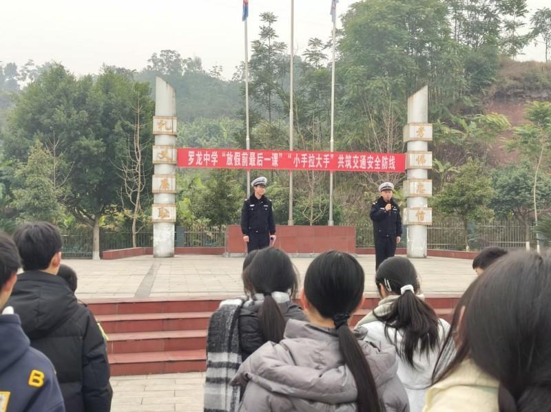 宜宾三江新区罗龙中学联合交管六大队开展“放假前最后一课”交通安全主题教育活动
