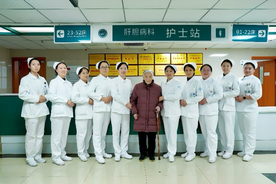 送走书记和院长后,孙老换上自己的衣服,刚走出诊室,她的三位研究生便立刻走上前,双手捧着一束盛放的鲜花递到她面前,齐声说道:“老师,您辛苦了!”孙老看着眼前的学生,看着那束盛开的鲜花,一边和学生拥抱着,嘴角慢慢扬起一抹微笑。花瓣上的水珠晶莹剔透,正如她76年从医路里,那份纯粹而坚定的初心。科室的后辈们也纷纷围了上来,你一言我一语地说着关切的话语,有的拉着她的手,有的轻轻扶着她的胳膊,亲昵地挨着她,拍照合影,诊室门口满是温情与不舍。