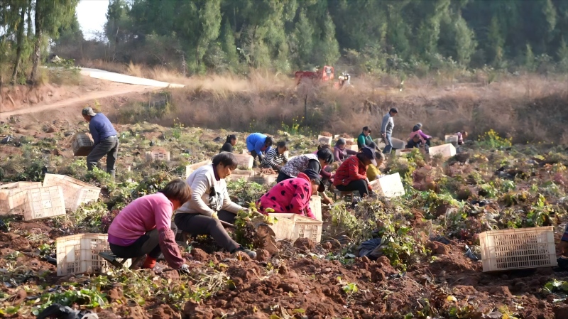 1月13日,走进自强镇黎明村的丹参种植基地,一派繁忙的丰收景象映入眼帘。一台挖掘机轰鸣作业,将埋在土层下的丹参连根带土翻出,大大提高了采收效率。