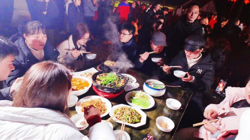 在万源市大巴山茶文化原乡,篝火熊熊,一场融合视听盛宴与舌尖美味的热闹活动正在上演,当地村民和游客齐聚一堂,大家一边回味节目里的精彩片段,一边品尝鲜香四溢的特色菜肴,撒贝宁同款美味的独特口感,让现场赞叹声此起彼伏。活动现场,网络主播也开启同步直播,推介万源腊肉、岩豆等优质农特产品,让大巴山的特色美味走出深山,香飘九州。