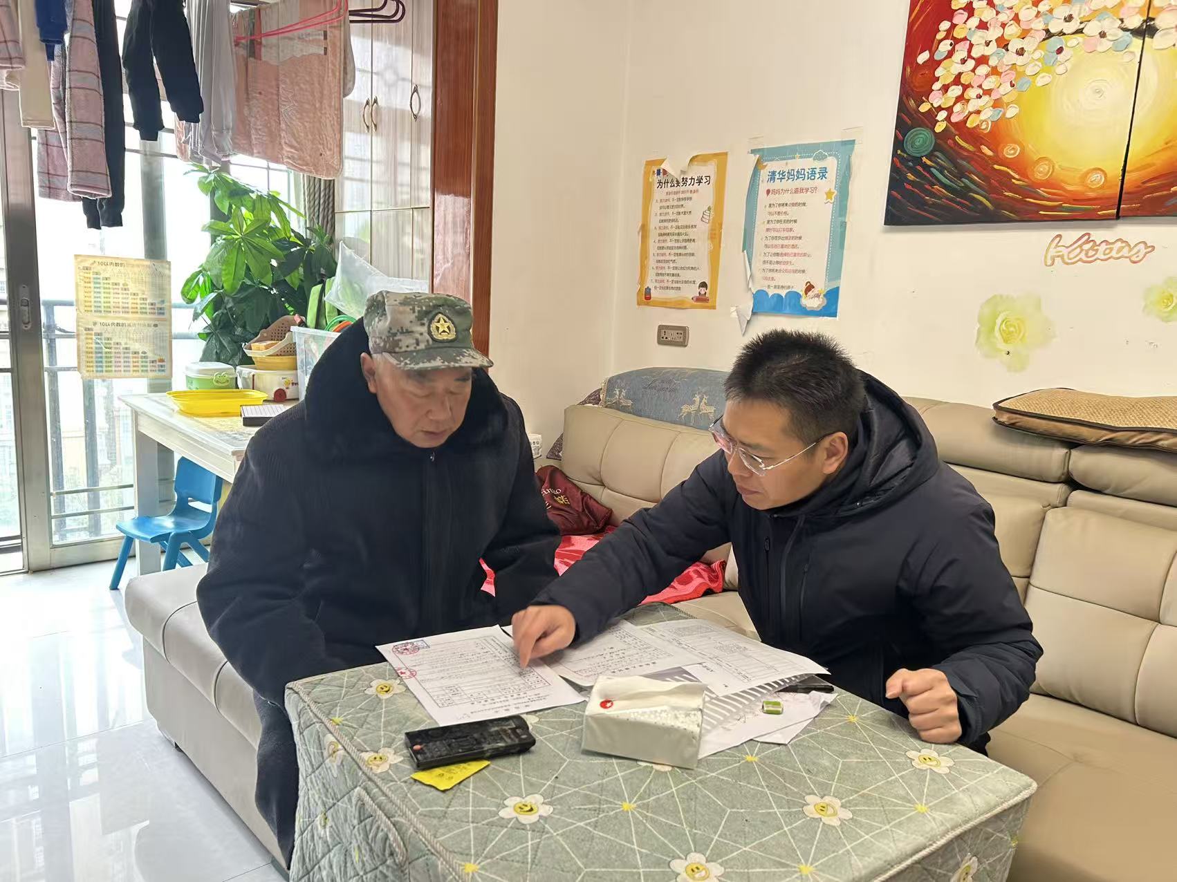 高效响应诉求,把服务送到家门口。竹阳街道锦绣苑社区收到退役军人游协生的诉求后,借助“两更”行动诉求转办机制,迅速流转至县退役军人事务局。2026年1月20日大寒时节,该局秉持“老兵之事无小事”的理念,不惧严寒组建工作组登门走访。工作人员与游协生促膝长谈,细致摸排其原单位尊崇意识不足、节日慰问缺失等问题根源,用通俗语言宣讲退役军人保障政策、现场答疑解惑,明确将督促相关单位整改落实日常关怀举措,暖心服务赢得老兵高度认可。