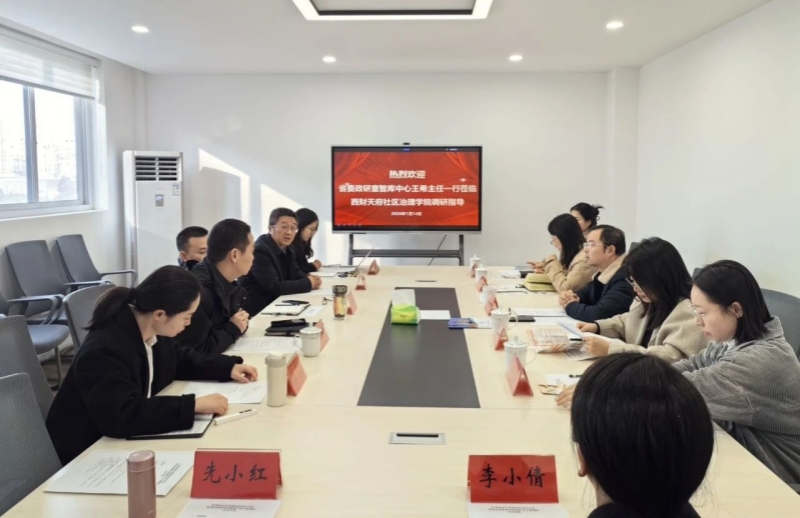 1月14日,四川省委政研室智库中心主任王希一行赴西南财经大学天府学院社区治理学院,围绕家政服务业专业人才培育工作开展专题调研,为行业提质扩容精准“把脉”。