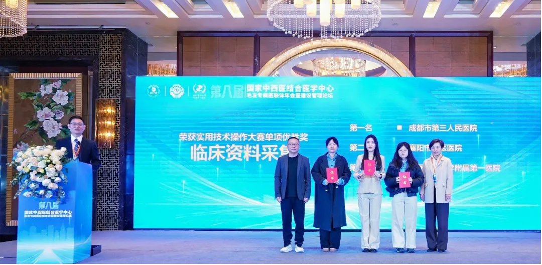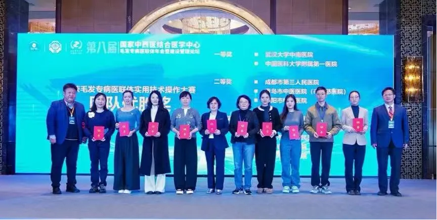 在备受关注的“精准诊疗·技愈新生”实用技术操作大赛中,成都市第三人民医院皮肤科团队凭借扎实的临床功底、规范的操作流程和出色的临场发挥,从众多参赛队伍中脱颖而出,一举荣获团队二等奖。在体现实战能力的临床资料采集单项竞赛中,皮肤科团队更是以严谨、全面、高效的表现,斩获该单项第一名,充分展示了在毛发疾病诊疗标准化、精细化方面的深厚积累与创新实力。