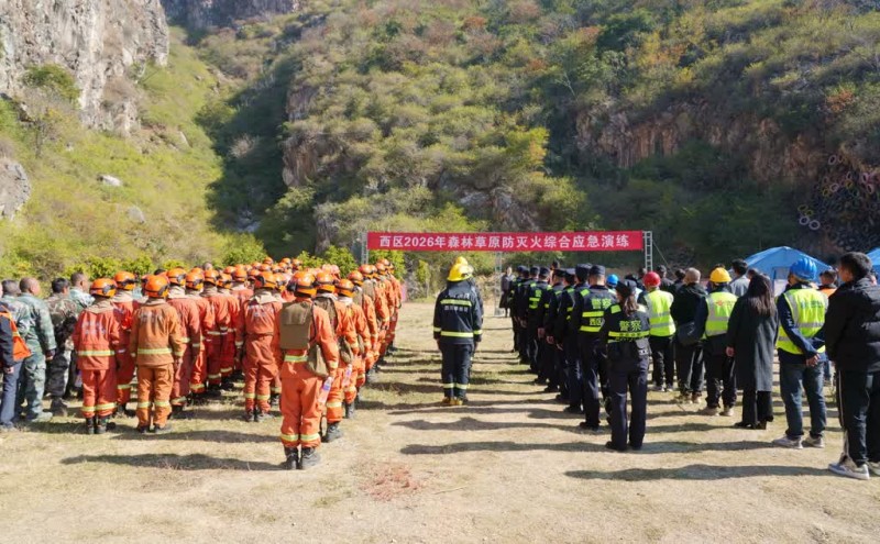 1月20日上午,攀枝花市西区格里坪镇大水井村西佛山袁家沟(计划烧除区域)响起急促的应急警报,2026年西区森林草原防灭火综合应急演练正式拉开帷幕。区委副书记、区长尚滟佳现场宣布演练启动,全区125名参演人员、多部门联动出击,以“练”筑防、以“战”备勤,上演了一场紧张有序的森林火灾应急处置实战演练。