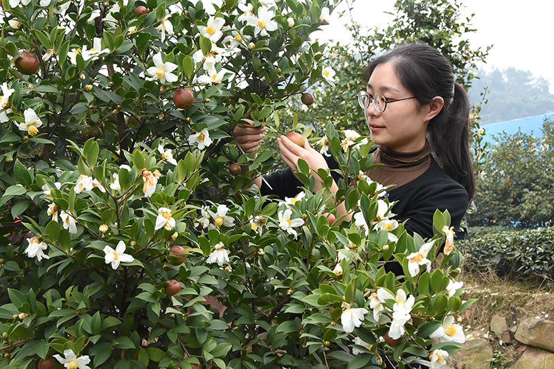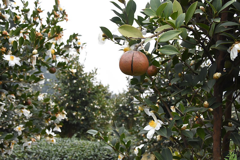 在度佳镇,像虞崇兴这样的种植户有5000余户,全镇近2万亩油茶林以白坡村为中心,造就天然“茶花谷”。每年10月下旬,青红色茶果与洁白茶花同树绽放,丰收与观光同频共振。全镇年产油茶果1000多万斤,催生出被誉为东方“橄榄油”的“茶花谷”品牌油茶生产加工企业。