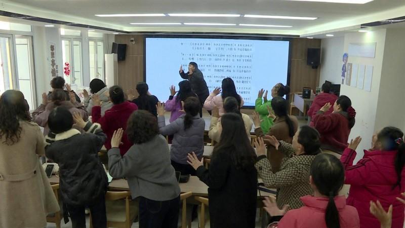 “宜邻课堂的老师很专业,参加唱歌班的培训之后,家里人都夸我唱歌比原来好听了,在这里上课很高兴,生活更充实和幸福了。”在筠连镇城南社区“宜邻课堂”女子声乐班里,杨文分和“同学”跟着老师放声高歌,旋律高昂,动作舒展,课堂气氛十分热烈。