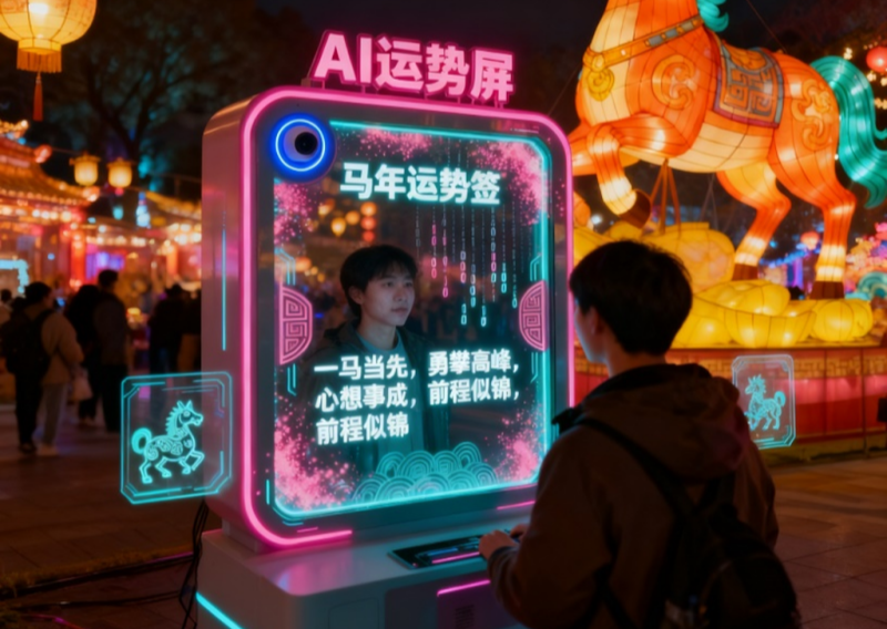 值得一提的是,多重互动点位是今年灯会的一大亮点。现场设置灯笼DIY体验区,游客可亲手制作灯笼并悬挂于“千灯廊”祈愿;扫码参与“互动心愿树”活动,新年愿望可化作弹幕滚动播放;击鼓鸣祥、摔碗酒等传统祈福项目与科技感十足的“AI求签”,让新春祝福更有仪式感。