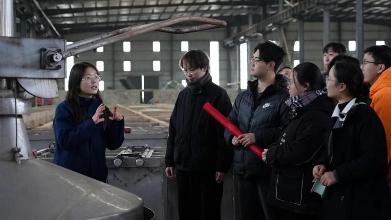 驻凸酒人才刘恋正在酿造车间解说工艺川