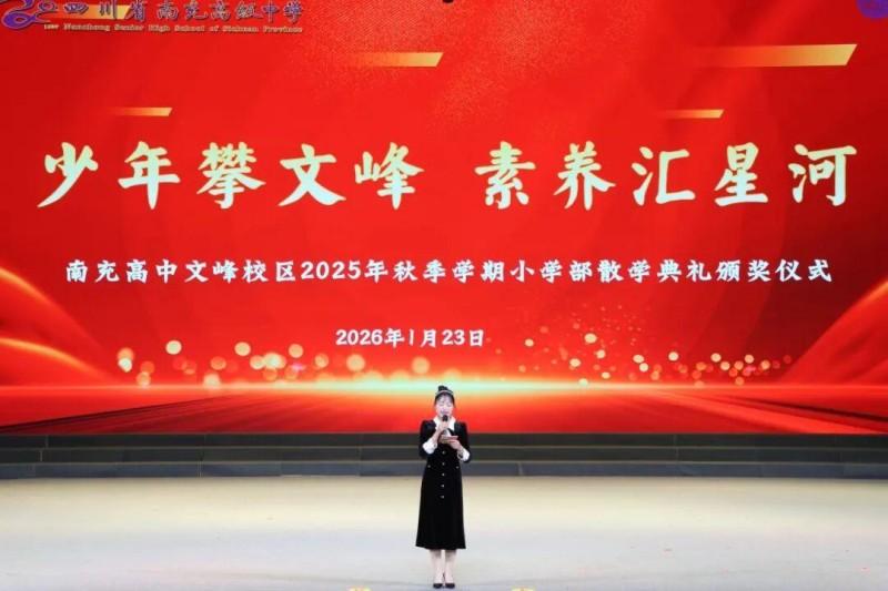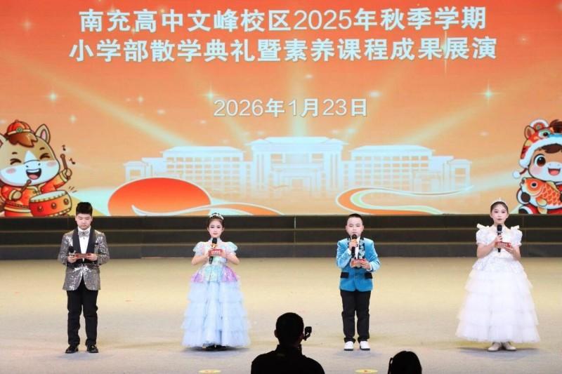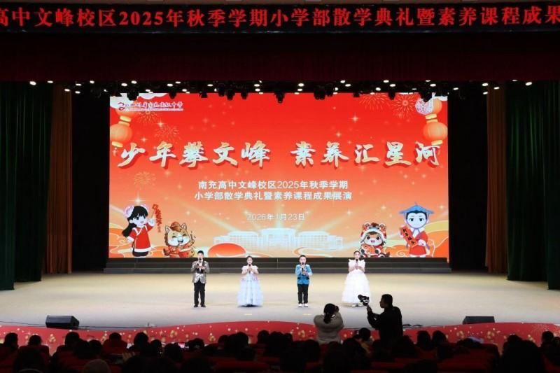 冬阳漫染飞檐,暖光轻拂黛瓦。2026年1月23日,南充高中文峰校区伯农大礼堂暖意与期待交织,一场镌刻成长、盛满温情的盛会悄然铺展。“少年攀文峰·素养汇星河”,小学部2025年秋季学期散学典礼暨素养课程成果展演,在师生与家长的殷殷目光中,缓缓拉开温柔帷幕。这是“文宝莲娃”们写给时光的成长告白,更是家校同心,共赴少年成长之约的温暖相聚。
