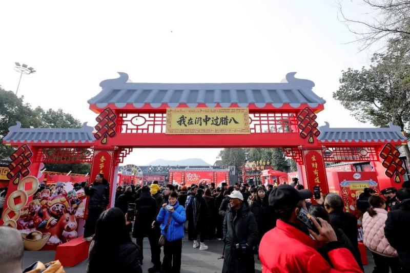贡院广场,人头攒动,长桌一字排开,工作人员将一碗碗精心熬制的腊八粥分发到市民和游客手中,大家共同享用这一传统的节日美食,粥香和人们的笑声在古城中交织成温馨的乐章。大型的民俗非遗巡游也在古城街巷中启动,过了腊八就是年的喜庆氛围弥漫了古城每一个角落。