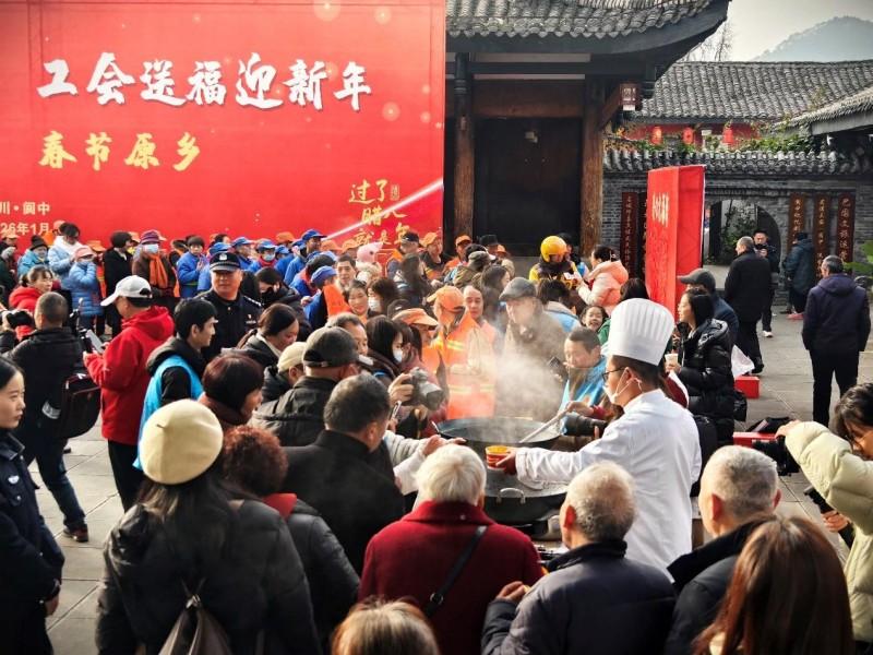 今年,阆中市以腊八节为载体,通过“沉浸式体验全域化联动”模式,让市民和游客在品粥和互动中感受中华传统文化魅力,打造文旅融合特色品牌,除了城里的市民和游客在品粥逛古城看演出外,农村各地也纷纷举办吃腊八粥迎新年的活动。