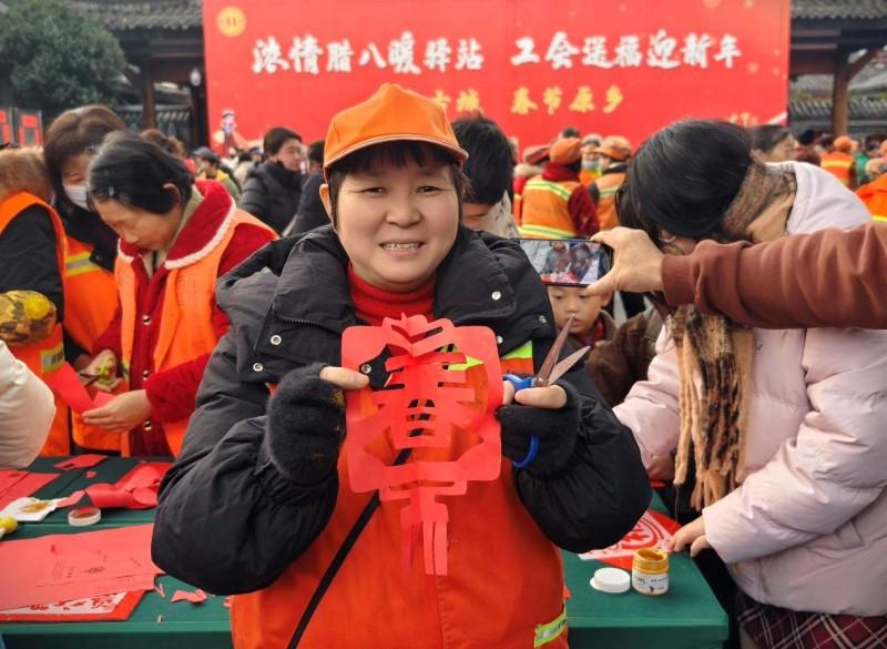 在贡院广场爱心驿站,市总工会还开展了“浓情腊八暖驿站·工会送福迎新年”主题活动,向坚守岗位的一线职工及新就业群体免费写春联、赠送福字窗花,传递冬日温情与新春祝福。
