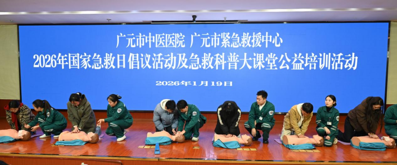 1月19日,广元市中医院成功举办2026年“国家急救日”倡议活动暨急救科普大课堂公益培训。活动以“关爱生命,救在身边”为主题,旨在普及急救知识与技能,提升全民自救互救能力,以实际行动践行“人民至上、生命至上”理念,助力健康中国建设。