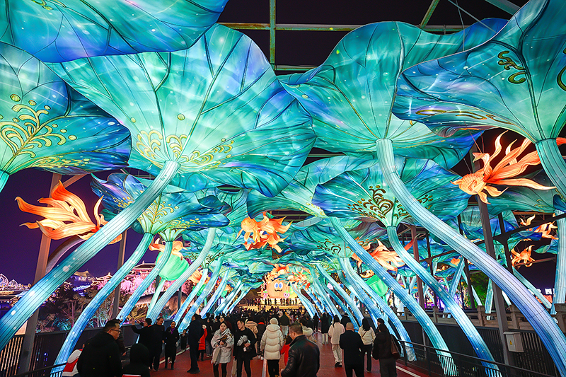 本届灯会深化与《王者荣耀》合作,并首次携手潮流品牌STAYREAL,打造“卜同凡响椒个好运”主题治愈系灯组及潮玩快闪店。游客可赏限定灯组、逛潮流市集、购联名文创,享受“观灯+购物+社交”一站式体验。