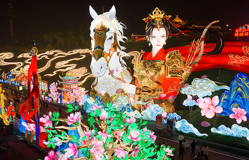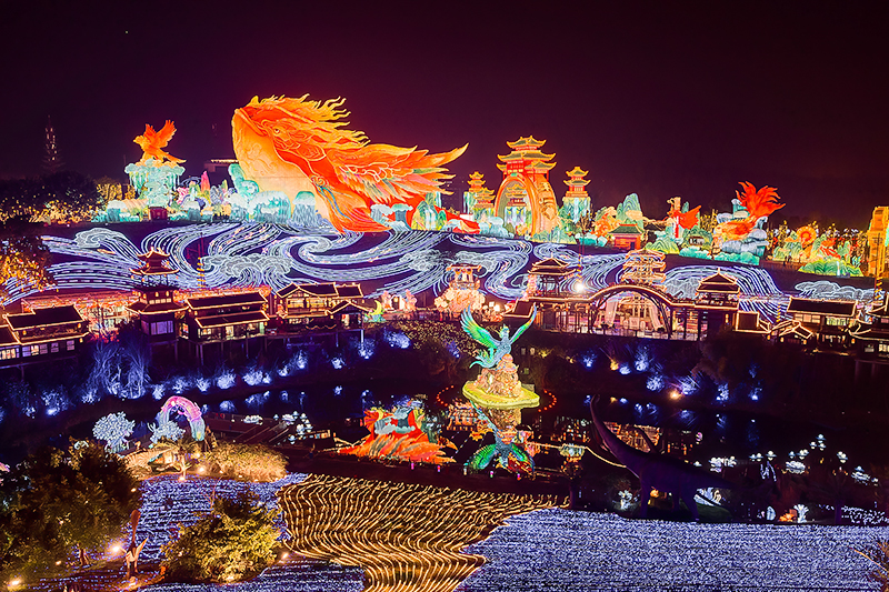 作为国家级非物质文化遗产,本届灯会立足650亩园区,打造“中国结大道”“福禄双至”“木兰传奇”等十大板块,设置11组超大型灯组、200余组中小型非遗彩灯。210米长的“神奇华夏”灯组将庄子笔下的鲲鹏升华为中国探索精神的视觉奇观;180米长的“木兰传奇”首创“彩灯连环画”叙事形式,用光影讲述家国情怀;“福禄双至”广场复刻热闹庙会,“生生不息”灯组以“生命之树”诠释生态智慧。