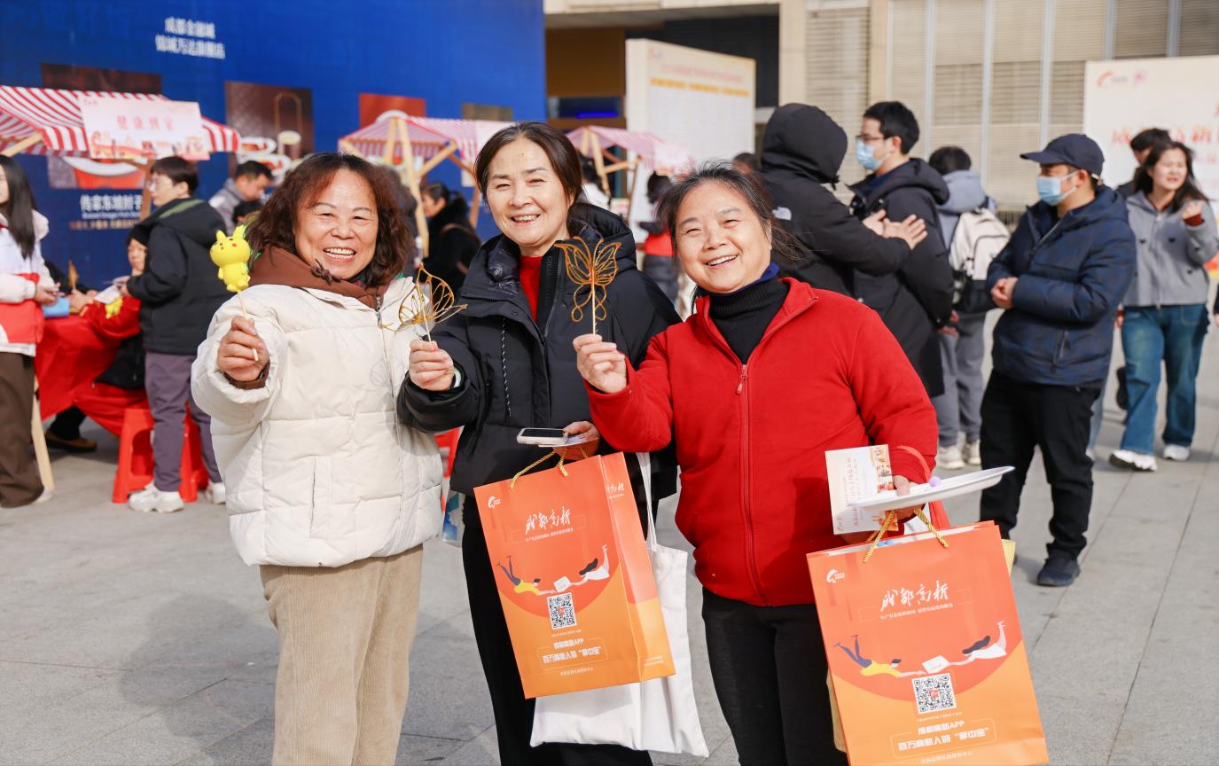 “今天活动很有意思,不仅学习了一些文明礼仪知识,近距离接触到非遗民俗文化,还领取了新春福袋,感受到浓浓的暖意。”成都高新区桂溪街道益州社区居民张倩兮打卡完所有的服务点后这样说道。