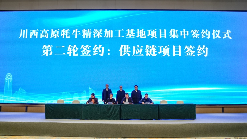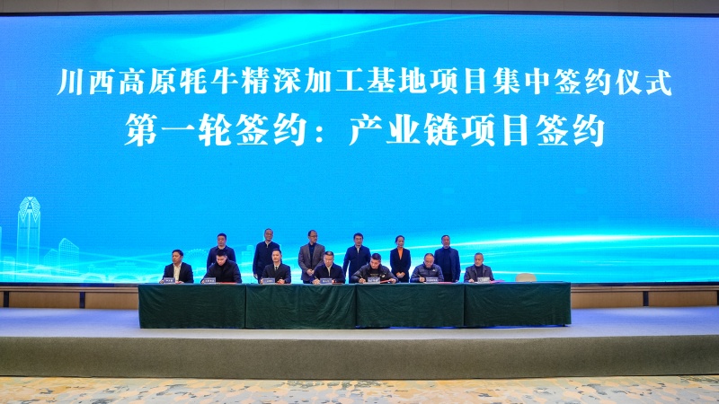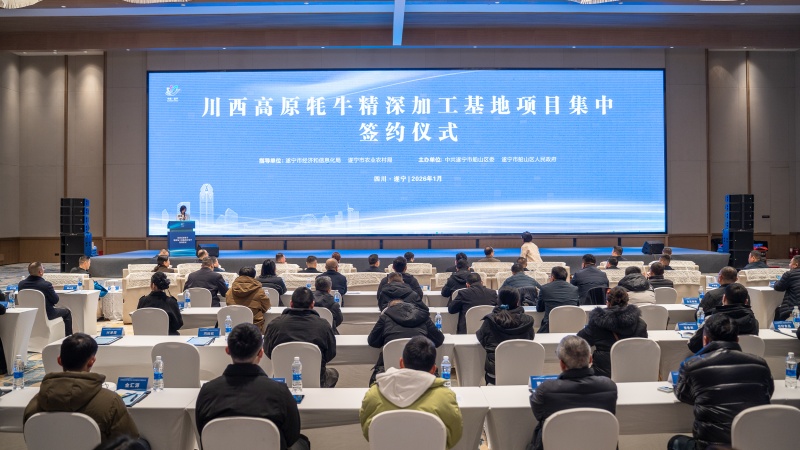 2026年1月28日,川西高原牦牛精深加工基地项目集中签约仪式在遂宁万豪酒店举行。此次签约汇聚省、市、区各级领导、阿坝州相关代表及100余名企业家,集中落地11个牦牛全链条核心项目,总投资超40亿元,预计达产后将形成全产业链产值约200亿元,标志着遂宁船山正式扛起川西牦牛产业集群化发展的“大旗”,开启立足西南、辐射全国的特色农业产业新征程。
