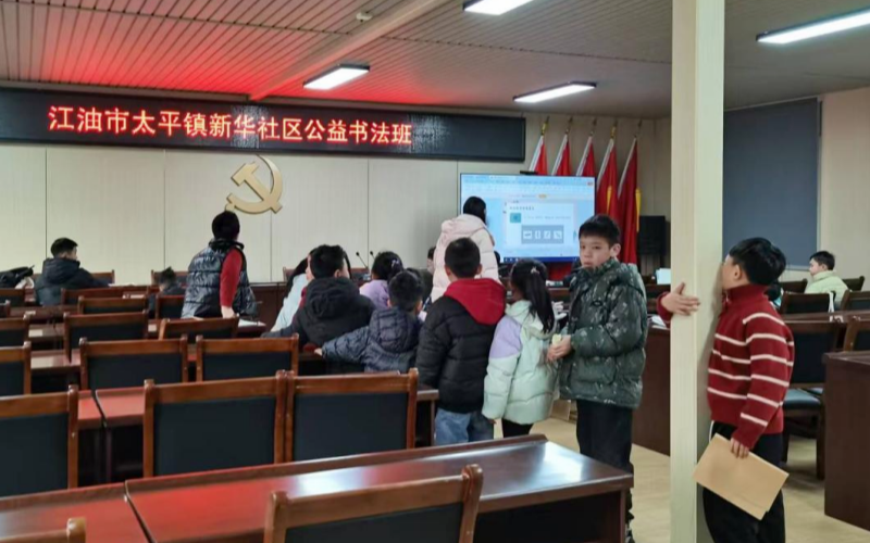 绵阳江油市新华社区联合工会“小学生公益书法班”正式开课