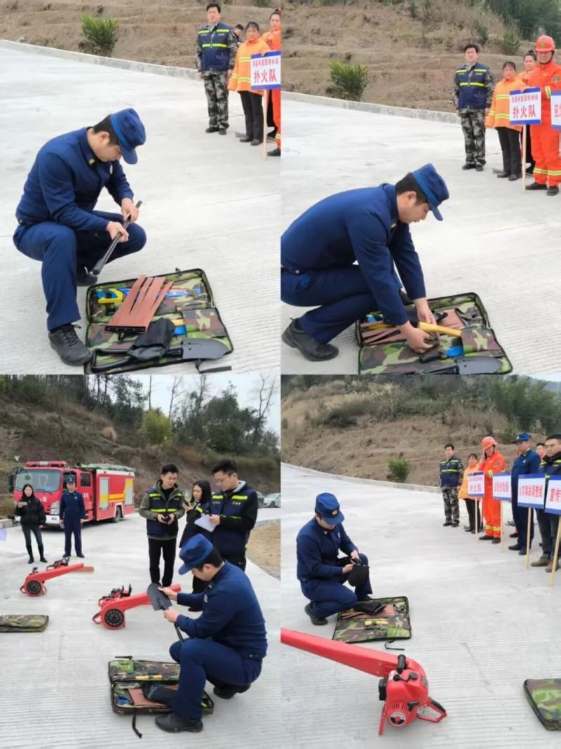 “油锯启动前要检查油路,风力灭火机操作时要保持安全距离,逆风扑打!”14时20分,参演队员们已悉数到场,整齐列队,整装待发。演练正式开始前,来复政府专职消防救援站副站长张玮用理论与实操相结合的方式,对消防灭火设备的操作技巧进行细致讲解。