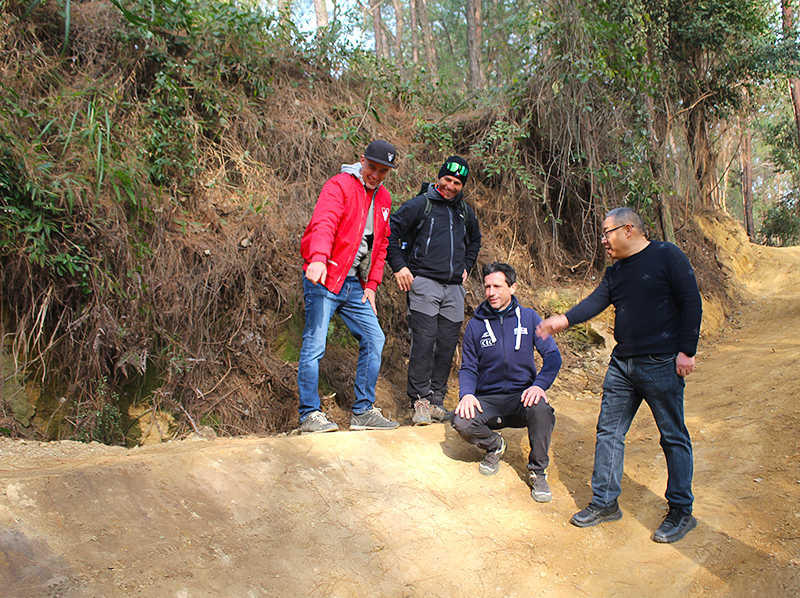 来自法国的专家团队现场介绍了赛道规划。三条专业赛道依高石梯独特山形而建,形成覆盖初、中、高级的完整体系。其中,速降赛道自观景台附近山顶延伸至山脚,长达1100米以上的红色中级赛道专为具备一定基础的骑行者设计,重点考验操控技巧;超过1700米的黑色高级赛道设有双路线选择,穿越崖壁落差显著的核心区域,地形极具挑战性,可满足专业选手竞技需求。沿山脚老煤矿运输遗址修建的蓝色初级赛道,则以平缓路线适配新手,实现了运动体验与工业遗存的巧妙结合。三条赛道均符合国际赛事标准,未来可承办国内外各类山地自行车赛事及用于专业训练。