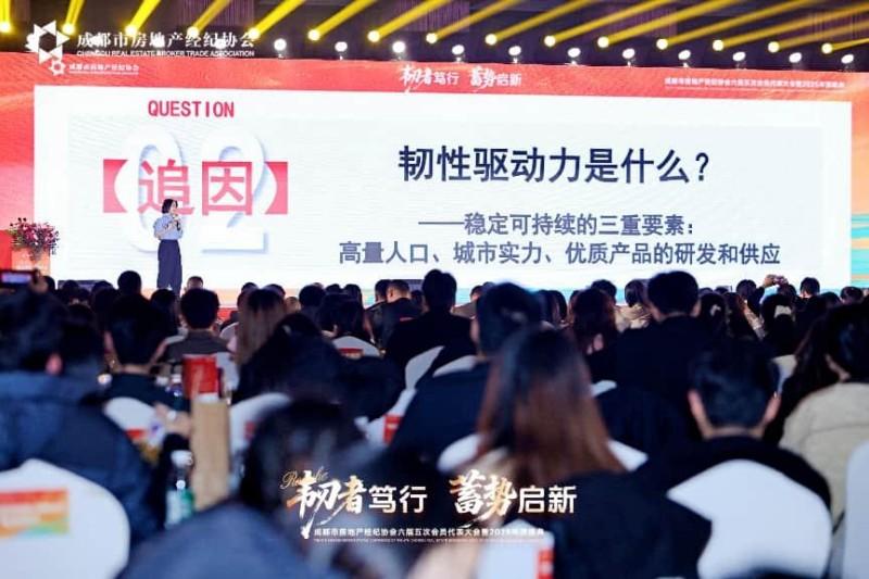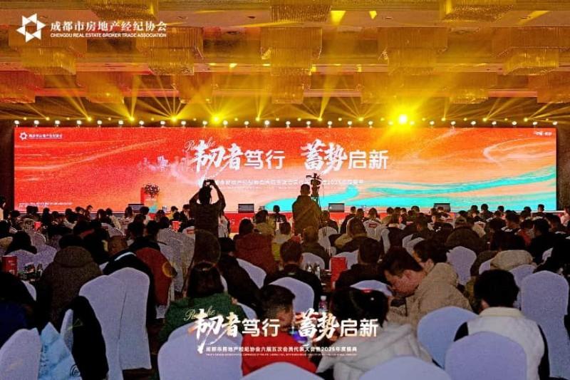 1月27日,成都市房地产经纪协会第六届五次会员代表大会顺利召开。市住房城乡建设局相关领导、业界嘉宾、会员代表和媒体人士近五百人齐聚一堂,共话行业趋势,共谋发展新篇,共同展望成都房地产市场的韧性未来。