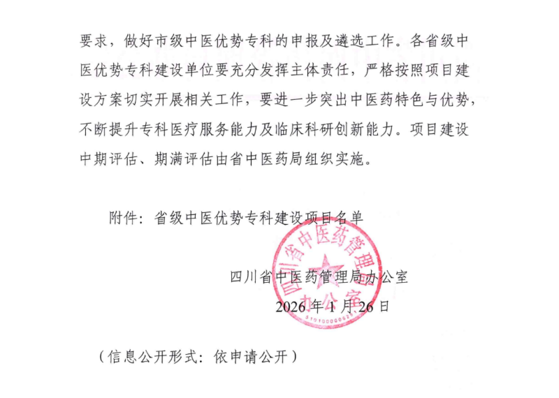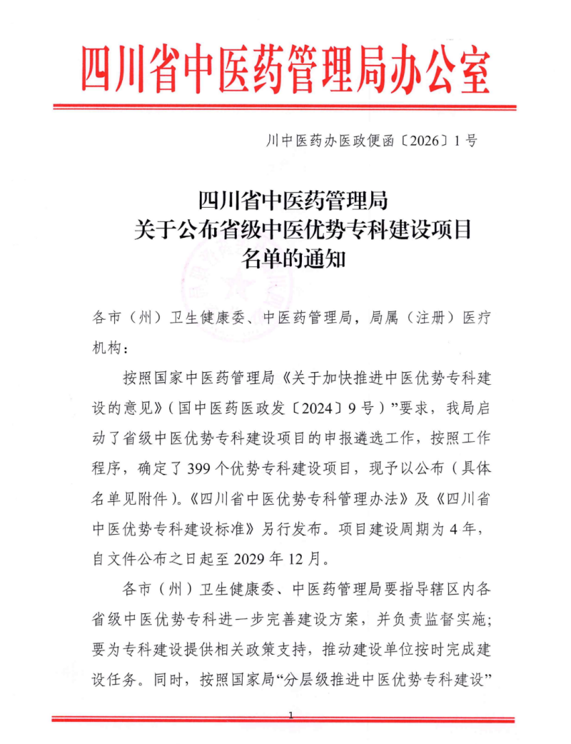 此次入选省级中医优势专科建设项目,既是对该科室现有诊疗能力与科研水平的充分认可,也为科室高质量发展搭建了更高层次的平台。下一步,科室将以省级优势专科建设为契机,持续优化诊疗规范,强化技术创新,加强人才梯队建设,为县域及周边群众提供更加优质、高效、便捷的中医药服务,为推动县域中医药事业高质量发展贡献更大力量。(供稿方:西充县中医医院)