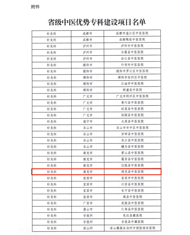 西充县中医医院针灸科成功入选省级中医优势专科建设项目名单