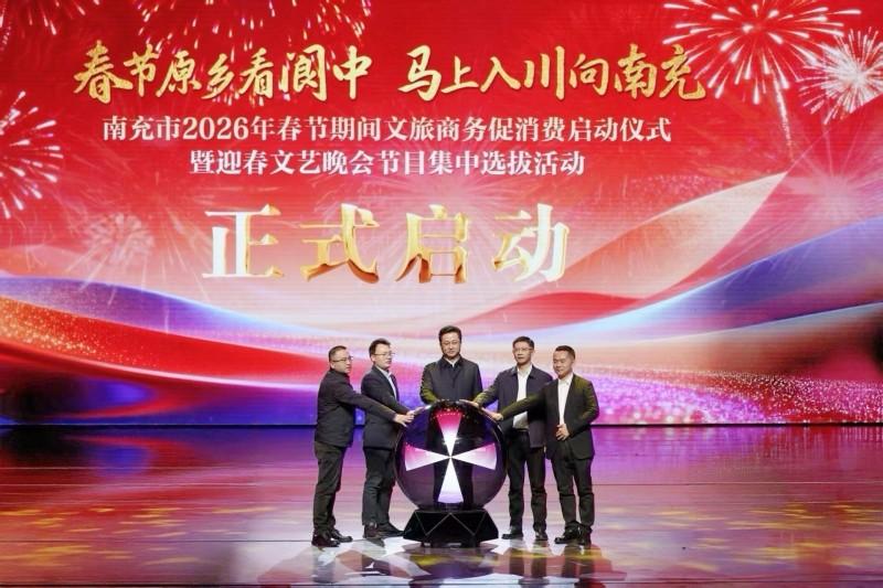 1月29日下午,由南充市文化广播电视和旅游局、市商务局主办的南充市2026年春节期间文旅商务促消费启动仪式暨迎春文艺晚会节目集中选拔活动在南充大剧院举行。市人民政府副市长李玉甫参加启动仪式。