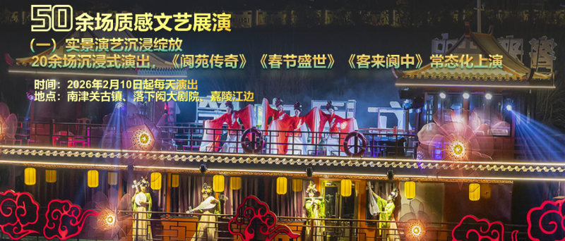 实景演艺沉浸焕新,以阆中古城千年文脉为基底、春节文化等多元底蕴为内核的《阆苑传奇》《春节盛世》《客来阆中》等上演20余场。