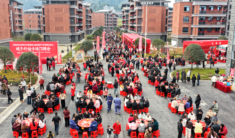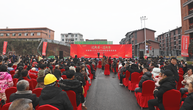 1月31日,以“迁新居·过新年”为主题的2026年迎新春暨百家宴活动在筠连县沐爱镇金坪村新居文化广场举行,搬迁群众、援建代表与镇村干部等齐聚一堂,共迎新春。