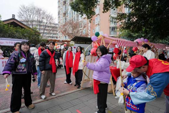 一张小小的“集章卡”让全场充满欢声笑语。诗词飞花令、知识接龙、灯谜擂台、射弈投壶、交子拼图、打糍粑、剪纸等九大游戏区热闹非凡,小朋友拉着家长穿梭其间,闯关的快乐与收获的喜悦在社区久久回荡。
