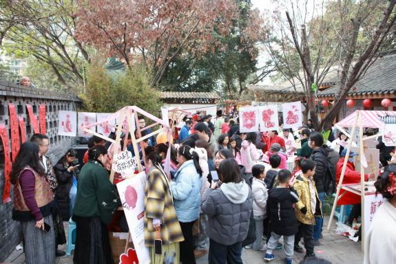 公益义集区更是温情涌动,以“交子信义·新春传爱”为主题的三大板块传递着邻里善意。20个居民学生义卖摊位上,闲置物品、亲子手作、新春福字整齐摆放,小摊主们热情分享,买家踊跃购买,让闲置物品焕发新价值;10个商户爱心摊位上,街区商户、爱心企业带来特色商品与IP文创,义卖所得将捐赠给困境人群,用行动彰显社会责任;“新春爱心盲盒”深受欢迎,捐赠者可抽取精康群体制作的手作小礼品,让善意双向奔赴。自然主题市集同样别具特色,自然手作、旧物再造、环保生活用品一应俱全,摊主们分享“物品背后的故事”,传递环保理念,共建绿色诗意社区。