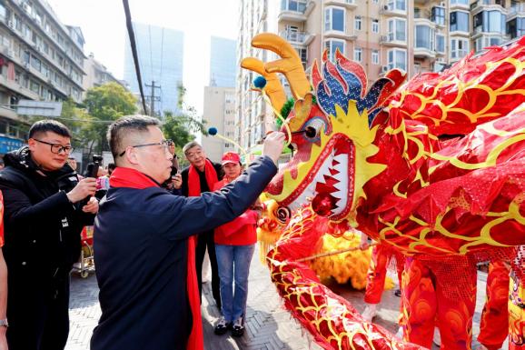 活动伊始,由锦官驿街道党工委书记张进、成都市锦江区爱有戏社区文化发展中心理事长杨海平为金龙点睛,活动正式启幕!街头巷尾更添民俗盛景,舞龙舞狮队沿街巡游,金黄的龙身与鲜红的狮头在锣鼓声中灵动翻飞,时而腾跃翻滚,时而摇头摆尾,引得居民纷纷驻足喝彩,孩子们追着队伍奔跑欢呼,浓浓的年味儿在欢声笑语中弥漫开来。舞龙舞狮队为诗会送上吉祥祝福,刚劲有力的表演与现场的诗词雅韵相映成趣,让传统文化的多元魅力尽情绽放。