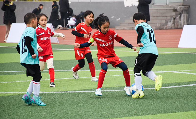 赛场上,小球员们在绿茵场上挥洒汗水,努力奔跑,传球、断球、射门,队员之间团结协作,默契配合,在每一次进球的时刻都欢呼庆祝,用不服输的精神面貌勇往直前,展示出赛场上不仅有速度与力量的碰撞,也有技巧与智慧的交锋。