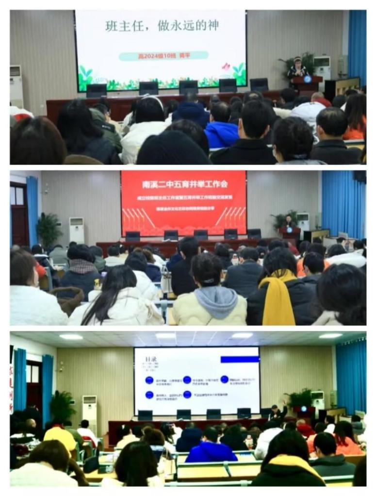 在随后的经验交流分享中,班主任代表们的发言精彩纷呈,提供了扎实而鲜活的育人实践案例。高二十班班主任蒋平老师以“班级特色管理”为主题,分享了在日常管理中渗透德育、激发班级活力的具体策略与生动故事;高一四班班主任杨章金老师则围绕“文化艺体协同培育”,介绍了班级如何整合文化艺术与体育活动,营造积极向上的班级文化,促进学生综合素质提升的积极探索;学校心育中心李兴文老师结合工作实际深入浅出地阐述了学校心理健康教育的理念、途径与方法,强调了关注学生心理需求、构建支持性环境在五育并举中的基础性作用,为全体与会者提供了宝贵的心理育人视角与实践启发。