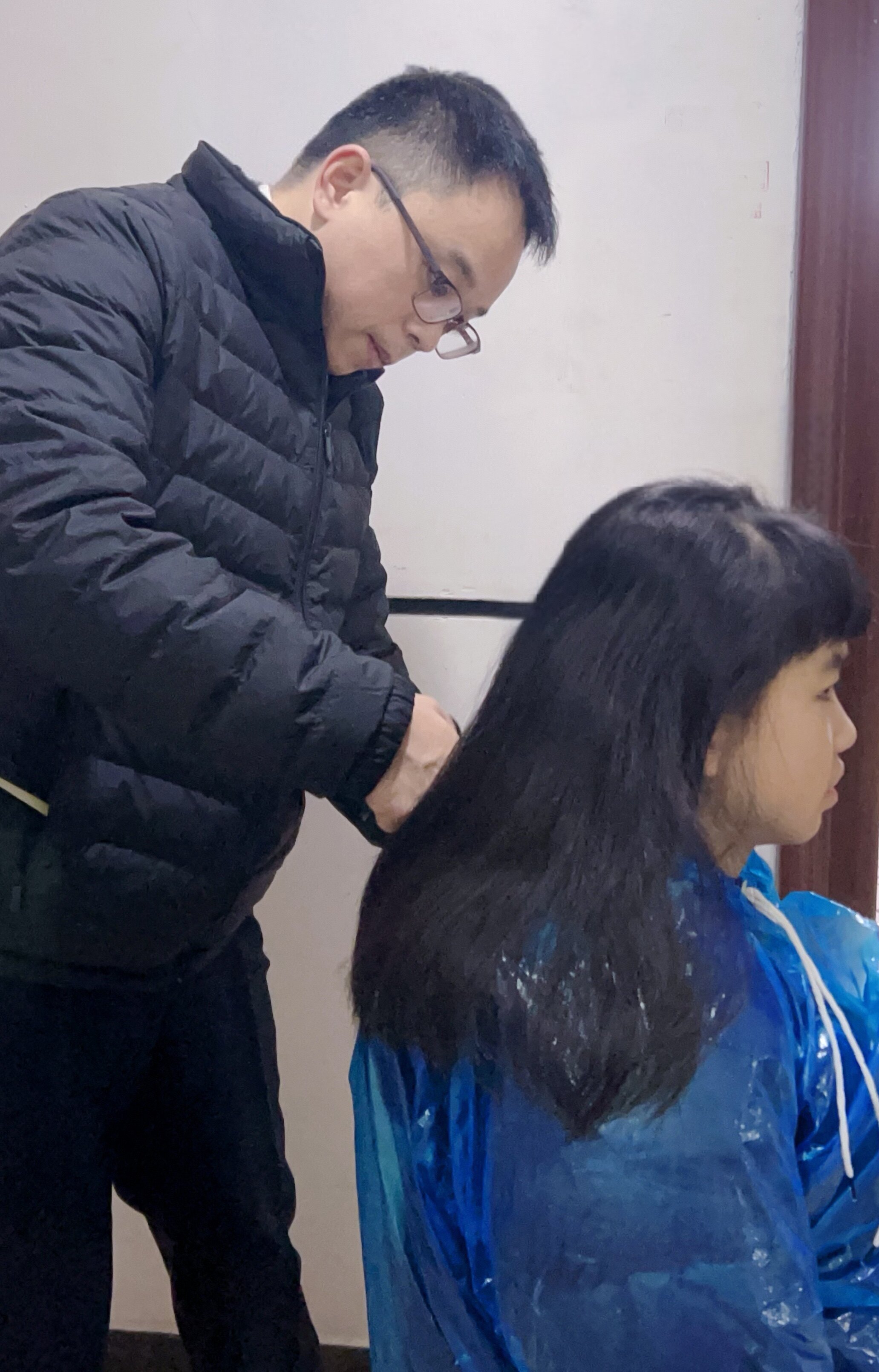 临行前,罗翔给一双儿女剪头发,自己悄悄藏起了孩子们的两缕发丝准备带走。