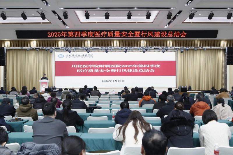 近日,川北医学院附属医院组织召开2025年第四季度医疗质量安全暨行风建设总结会。医院党政领导班子成员,相关职能部门负责人,临床医技科室正、副主任,正、副护士长,医疗组组长共计200余人参加会议。会议由副院长唐晓平主持。