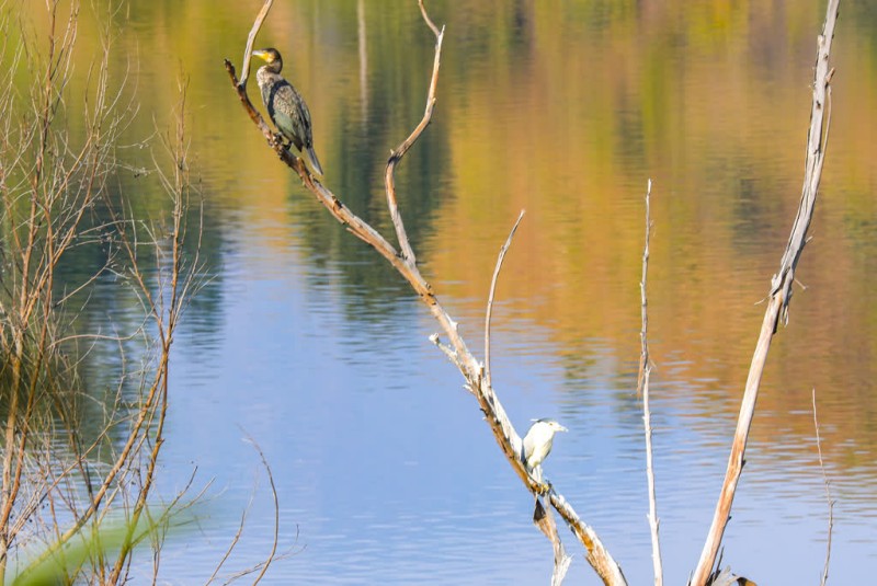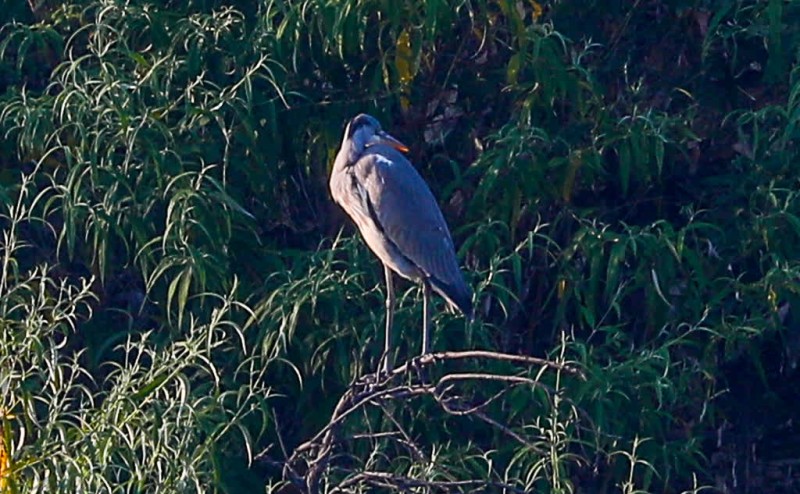 苍鹭隐匿在库区周边的林木灌丛中,伸长纤细的脖颈,一双锐眼紧盯着水面,待鱼虾游近便迅速出击,成为水库的灵动剪影。