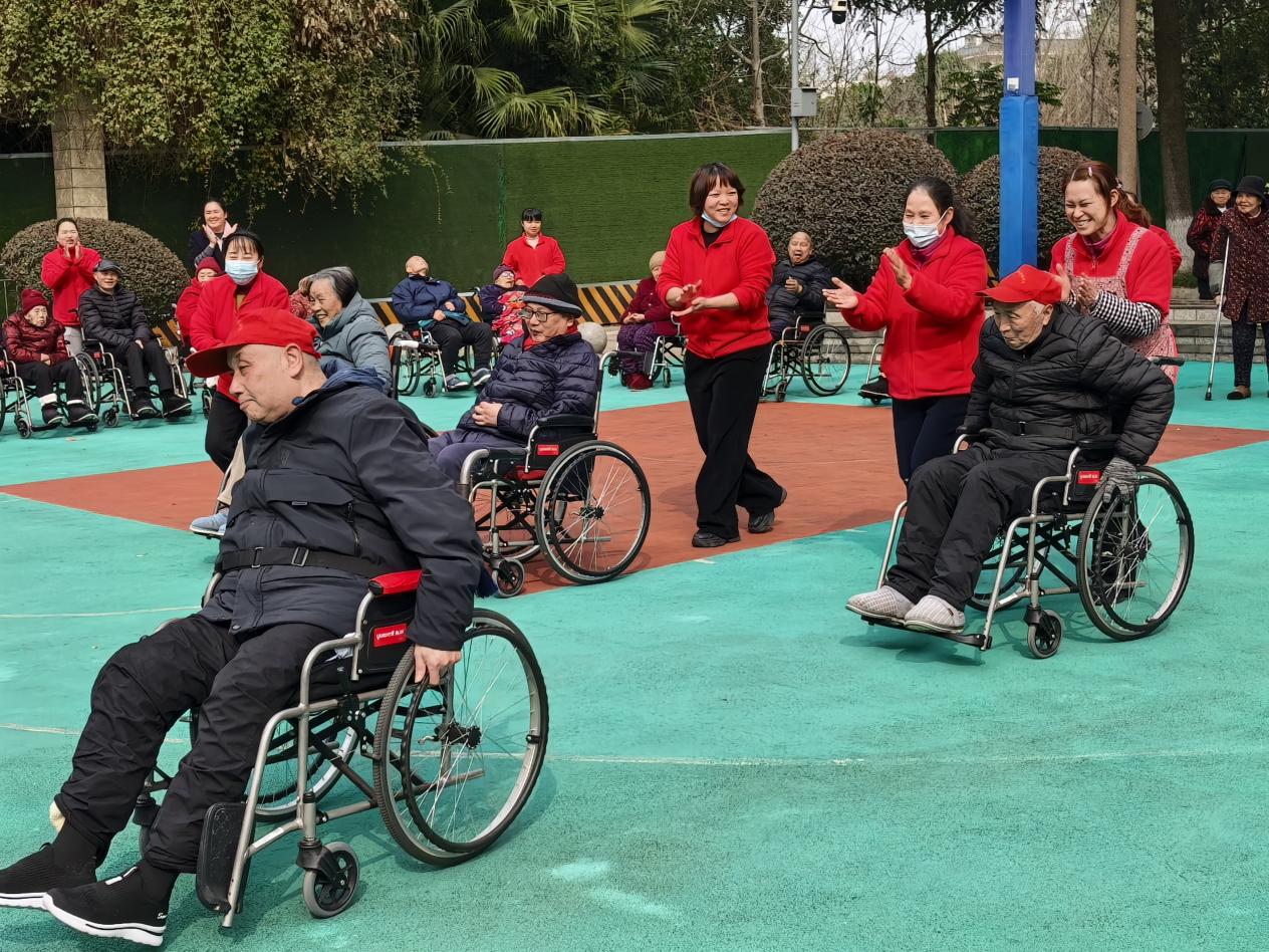 趣味赛场暖夕阳!成都市第二社会福利院护理员与老人协作,书写护养温情