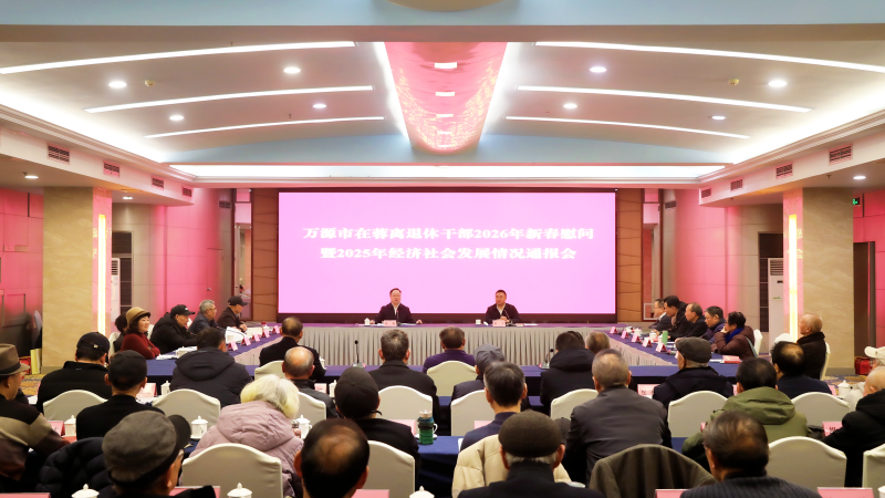 2月5日,四川省万源市在成都召开驻蓉离退休干部2026年新春慰问暨2025年经济社会发展情况通报会。受市委书记蒋波委托,市委副书记、市长朱挺代表市委、市人大常委会、市政府、市政协,向各位老领导及全市离退休干部和家属致以诚挚新春问候,与大家共抒情怀、共话发展、共迎佳节。