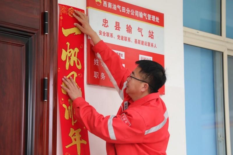 春节将至,忠县输气站在全力保障供气安全的同时,也用心营造温馨的节日氛围,让坚守一线的员工感受到“家”的温暖。值班室大门上,崭新的“福”字熠熠生辉;走廊上、学习室内,一幅幅火红的窗花点缀其间,将严肃的输气站场装点得喜庆而温馨。这些充满年味的布置,由坚守岗位的员工们共同动手完成,既寄托着对新春的美好祝愿,也凝聚着大家以站为家、团结奉献的真挚情谊。“虽然春节要在站里值班,不能和家人团圆,但这里也是我们的家。”一位正在张贴窗花的年轻员工赵向东笑着说道。浓厚的节日气氛与设备平稳运行的韵律交织在一起,为这场严肃的保供任务增添了融融暖意。