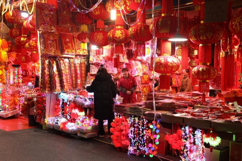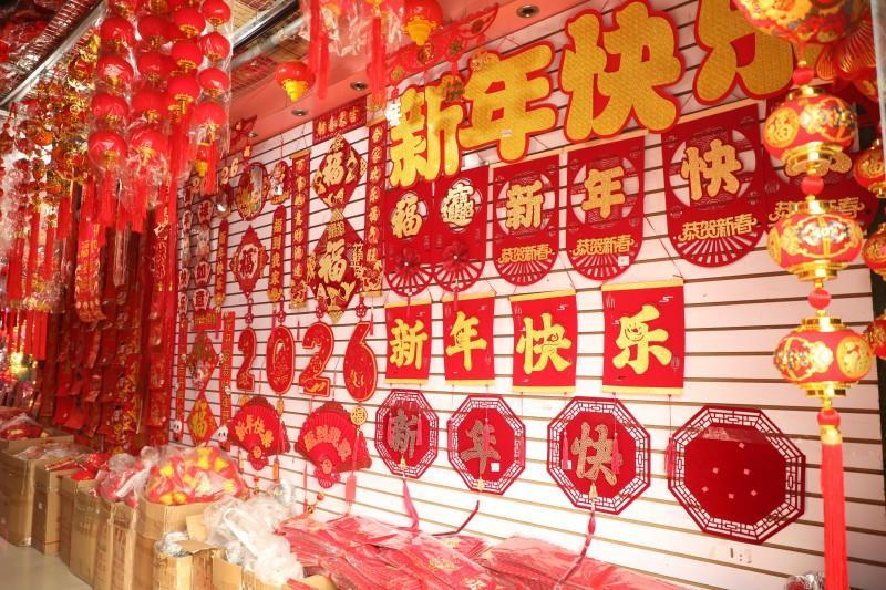 在翠屏区西郊批发市场和义乌小商品批发市场等“年货热门采购地”,前来选购年货的市民络绎不绝。市场内,红彤彤的灯笼、精美的窗花、喜庆的对联福字将各个摊位装扮得格外热闹,琳琅满目的商品让人应接不暇。