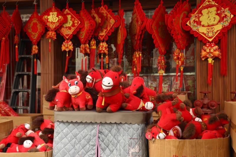 据商家介绍,与“马”相关的各类元素商品备受消费者青睐。印有骏马图案的烫金福字、造型可爱的毛绒小马玩偶、寓意“马到成功”的挂饰及摆件等,成为市场里的“明星产品”,吸引不少市民驻足挑选。