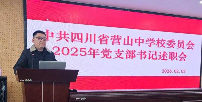 2026年2月2日下午,中共四川省营山中学校委员会各党支部书记述职会在芙蓉校区419会议室举行。学校党委领导、各党支部书记、支委委员及党员代表参会,各党支部书记依次汇报2025年度基层党建工作责任落实情况,接受评议。
