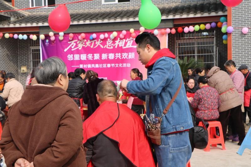 在迎春写福专区,书法老师挥毫泼墨,一幅幅吉祥春联、一张张红火福字跃然纸上,居民驻足挑选、笑意盎然,在传统文化浸润中迎接马年新春;公益理发区志愿者用娴熟的手艺、贴心的态度为居民修剪发型,以细微服务传递邻里温情,让大家清爽迎新年。