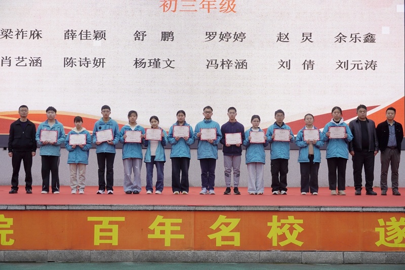 典礼现场,遂宁一中党委副书记、纪委书记曾圣洪,党委委员、副校长、工会主席兼文苑校区负责人邓建分别在两校区宣读了优秀学生表彰决定。