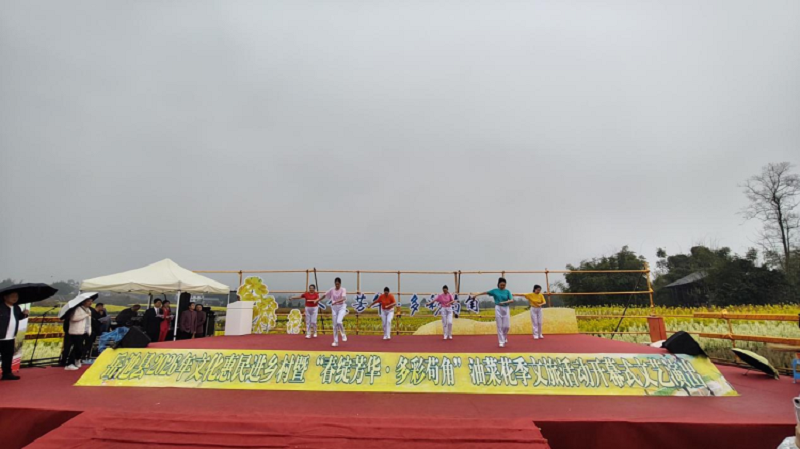 花田中央,一方舞台搭在阡陌之间。曲艺婉转、舞姿翩跹,文艺演出以天为幕、以花海为景,赢得观众阵阵掌声。台下,岳池米粉、黄龙贡米等本土优质农产品的展台前,游客们争相品尝、选购。商户卿勇军忙得不亦乐乎:“五彩花海给我们带来了人气,更带来了财气。我们的生态农产品借这阵‘春风’,也被更多游客看见和认可。”