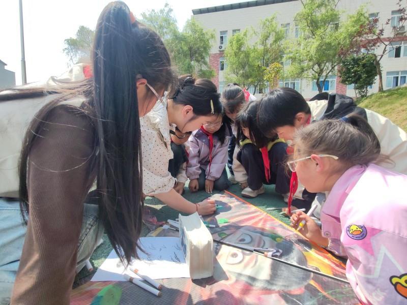手绘风筝环节,学生们化身小小创作者,以清明特色元素为灵感,在空白风筝上精心勾勒彩绘,柳枝、桃花、青团等意象跃然筝面,部分学生还搭配题写清明诗词,让每只风筝都成为独具文化内涵的创意作品。大家以小组协作的方式完成创作,在动手实践中提升审美能力与团队协作意识,实现美育与实践引领的有机融合。