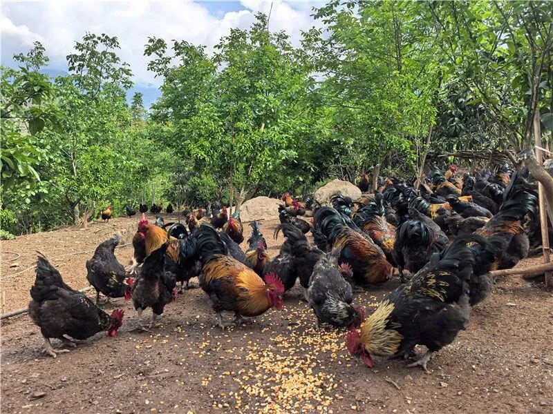 “林下养殖”是这里的核心理念。除了玉米,林间的昆虫、草籽、掉落的野果也是草科鸡的天然食粮,这种“粗粮+野味”的搭配,让草科鸡的肉质格外紧实,味道也更鲜美。