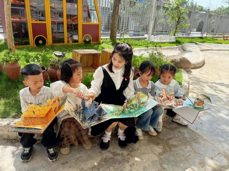 师幼共读,传递温暖陪伴:党员教师与普通教师化身“阅读引路人”,走进班级、走进阅读角,与幼儿围坐共读绘本故事。用生动的语言、温暖的陪伴,带领幼儿走进童话世界、感知文字魅力,在共读中建立亲密的师幼关系,让阅读成为师幼情感交流的桥梁。